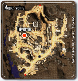Passo 12 ( job3_guil01 – Daora – [job3_guil01 82, 91] ) – Novamente na Guilda dos Sicários, fale com Daora sobre a informação da Garota escolhendo “Me dê 1 copo” e “Onde é o beco sem saída?”. Ela indica um local na parte de cima direita (nordeste) de Veins.