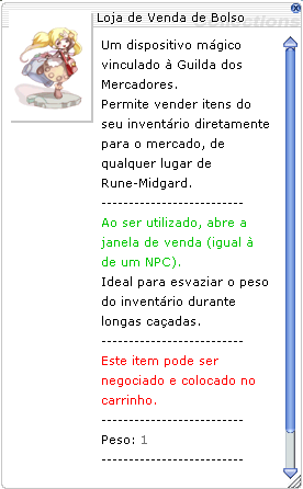 Ao ser utilizada, abre uma janela de venda igual à de um NPC, permitindo vender itens em qualquer mapa.